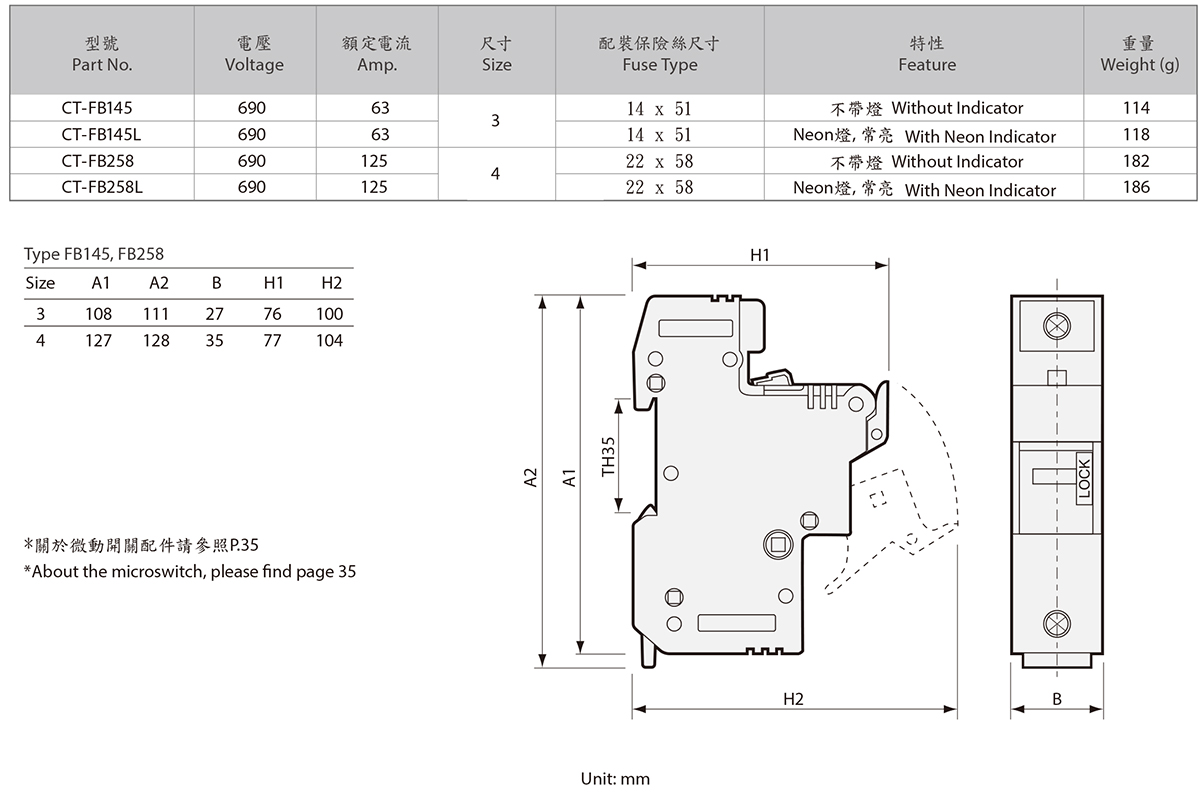 配裝保險絲尺寸 Fuse Type: 22 x 58