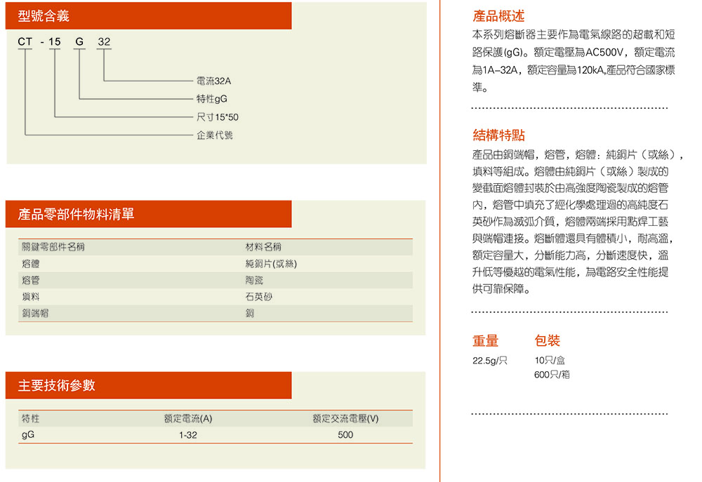 本系列熔斷器主要作為電氣線路的超載和短路保護(gG)。額定電壓為AC500V,額定電流為1A-32A,額定容量為120kA,產品符合國家標準。