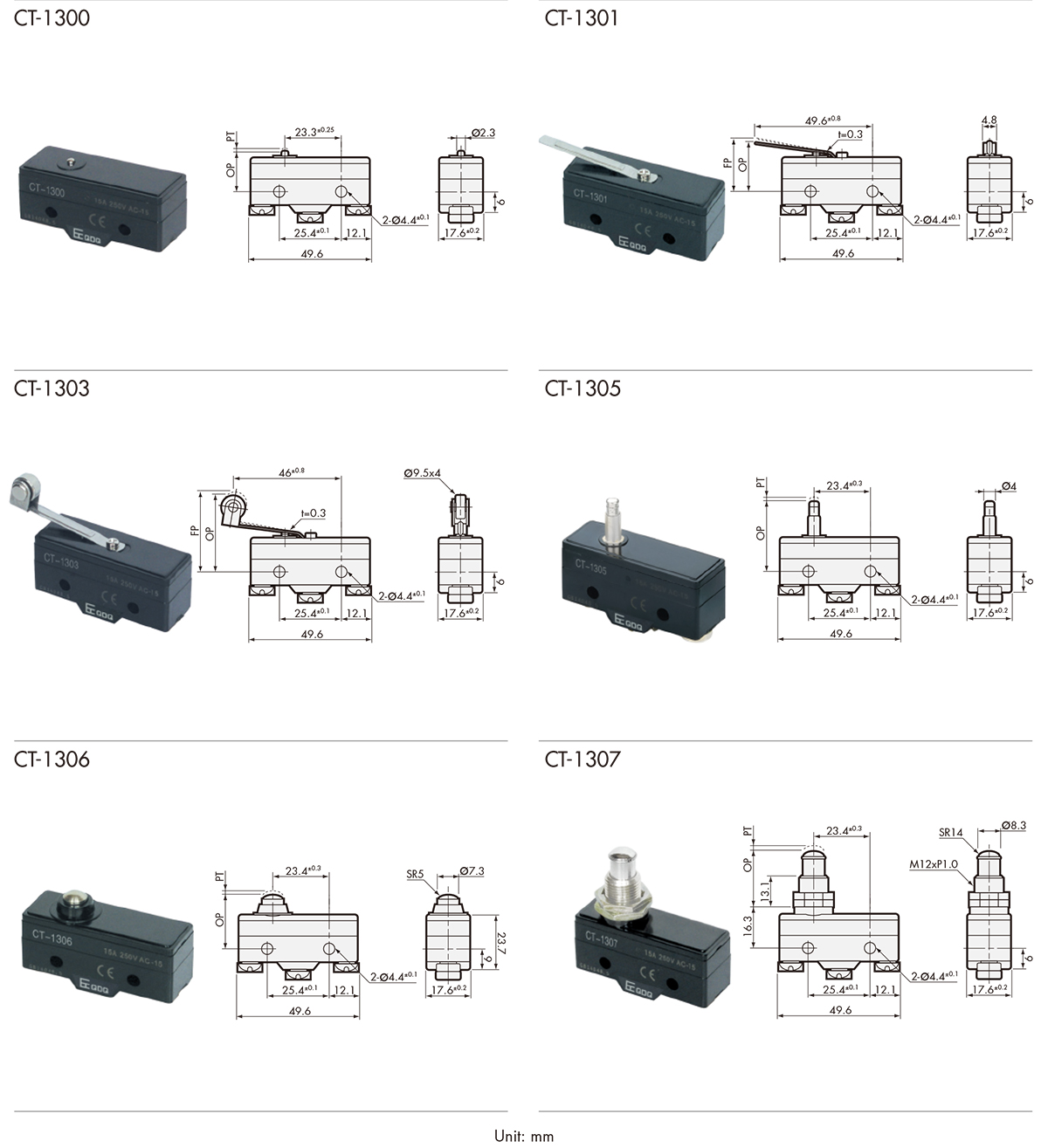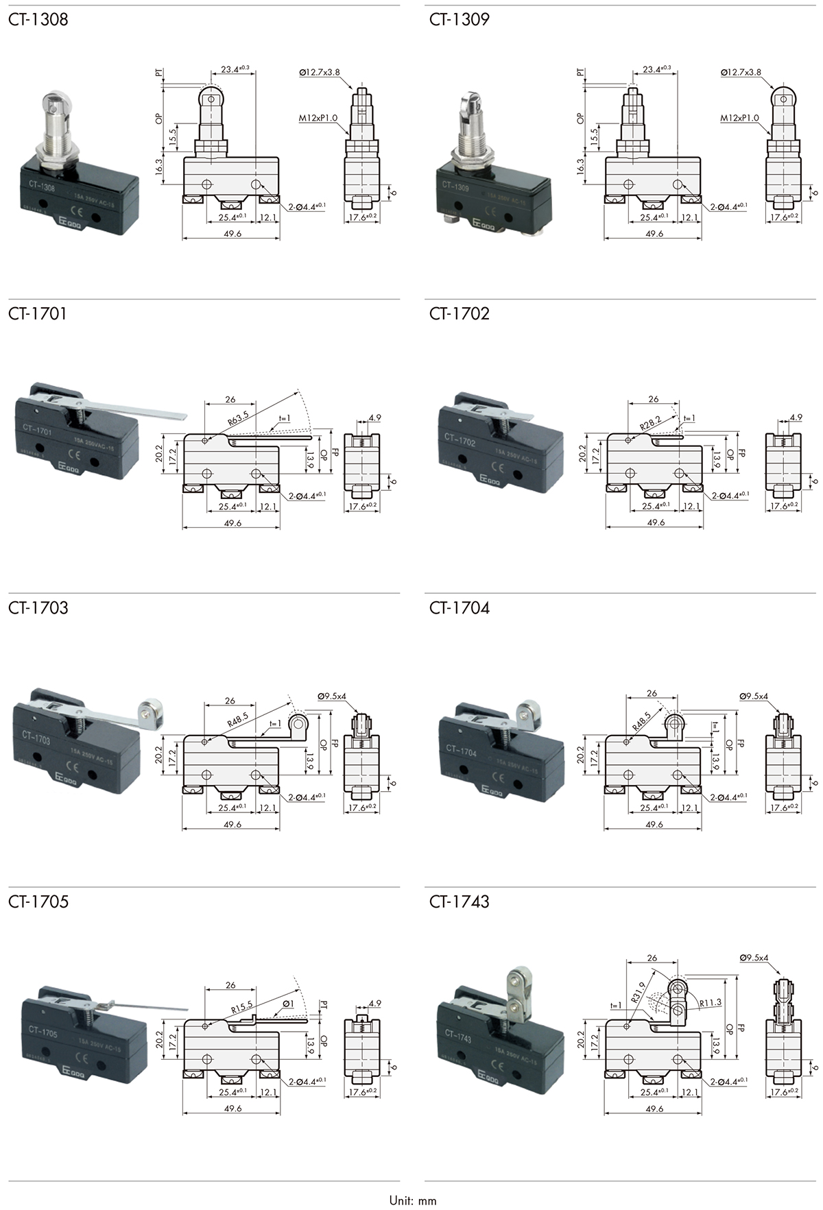 引動器種類多,且有動作位置可調整之設計(如CT-1701)